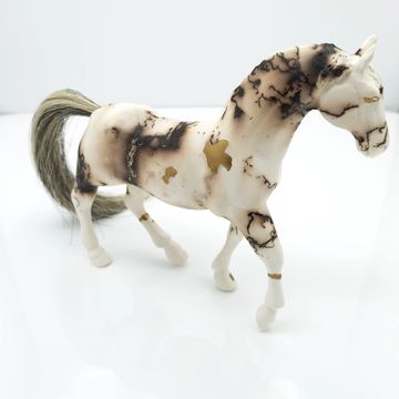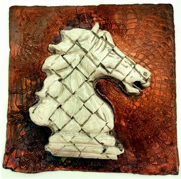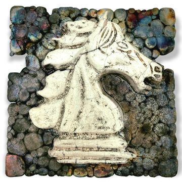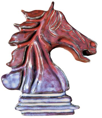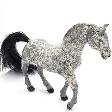 Horse #1, 2022, 20inL x 10inW x 11inH, Digitally Fabricated Ceramic Sculpture, Standard 181 Clay, Best Black 6600 Mason Stain, Wedgewood Mason Stain, Slab draped over laser cut cardboard armature and sculpted.